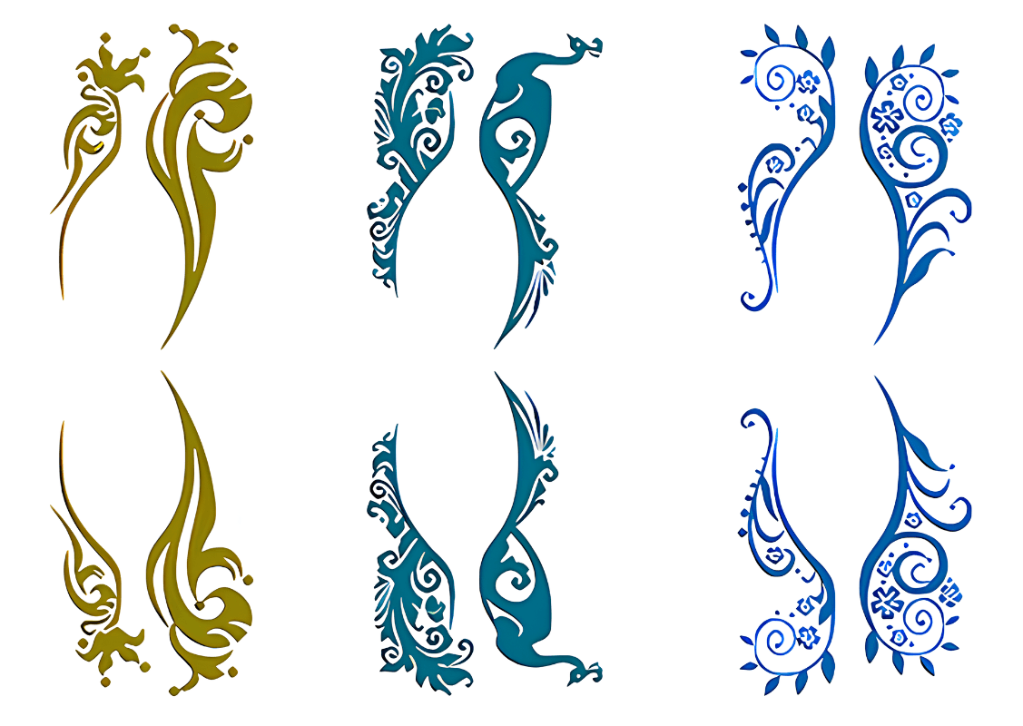 Our Blue & Brown Eye Makeup Tattoos are created to softly and aesthetically frame the eyes. Thanks to Like Ink’s smart design, the adhesive sticks only to the motif – no distracting plastic around – which gives a professional, makeup-like result. The motifs are about 4 cm wide and shaped to follow the eye’s contours in a flattering way.